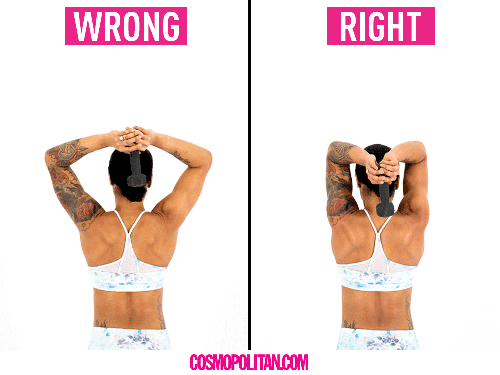 - Not Keeping Arms Close to the Ears During Presses It might feel easier to push the dumbbells away from your ears, but this reduces the effectiveness of the exercise. Keep your arms close to your head to ensure you’re targeting the right muscles.