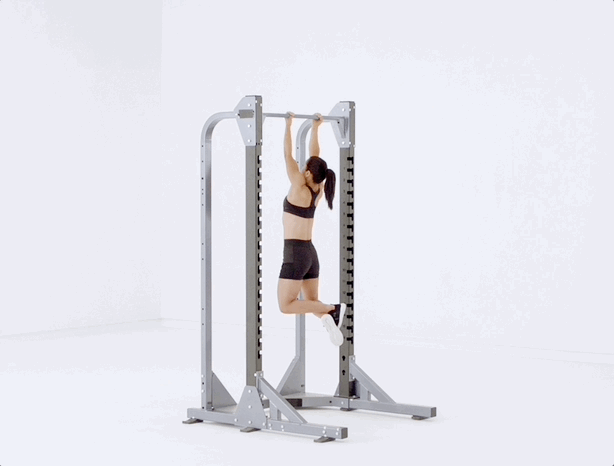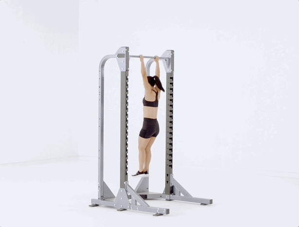 - Jump or use a step to bring yourself to the top of the pull-up position.