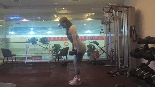 - Hinge at the hips with knees slightly bent, and pull the dumbbells towards your hips.
