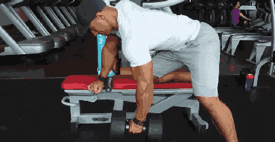 - Dumbbell Bent-Over Rows – 3 sets x 12 reps, rest 30-45 seconds between sets.
