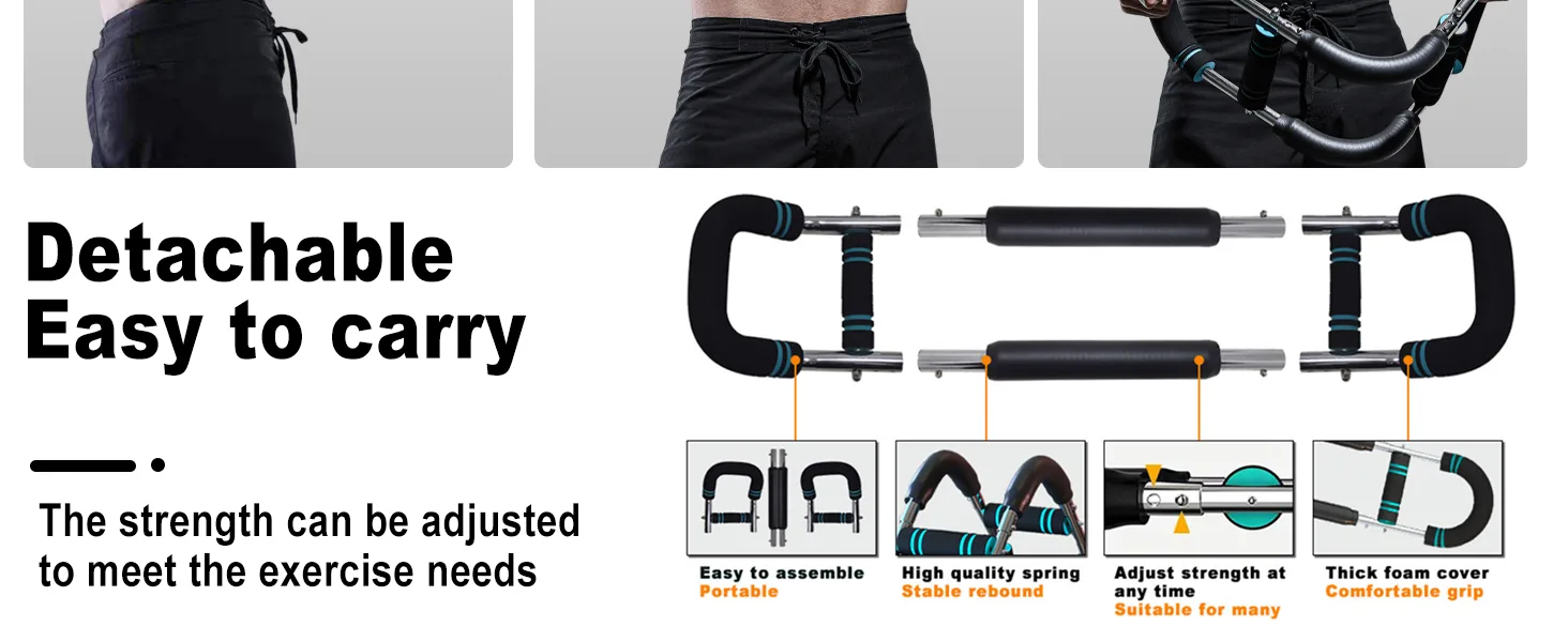 Detach and pack in 10 seconds! Compact enough for office breaks, hotel rooms, or outdoor sessions. Follow the included training guide chart to sculpt muscle in just 10 minutes/day, 4x/week.
