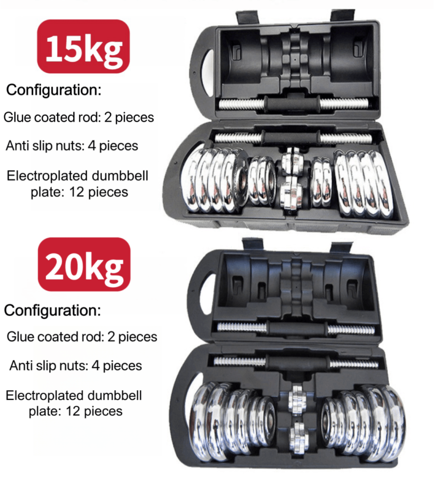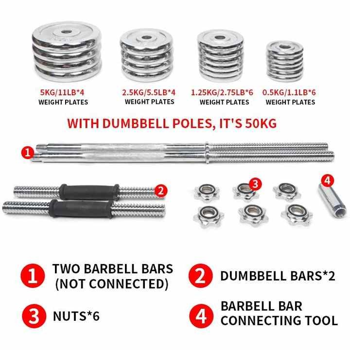 - Adjustable Weight Plates: Customize the weight of the dumbbell or barbell to your desired setting, allowing you to efficiently use the set for many exercises.