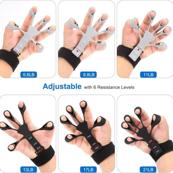 The adjustable hand grip set features six resistance levels, allowing you to build your grip gradually. The trainer comes in two colors: a gray grip claw offering 6.6LB, 8.8LB, and 11LB resistance, and a black grip claw offering 13LB, 17LB, and 21LB resistance. Whether you’re a beginner or an advanced user, you can easily adjust the resistance to match your strength level and track your progress over time. Two adjustable wrist bands are also included for extra support during your training.