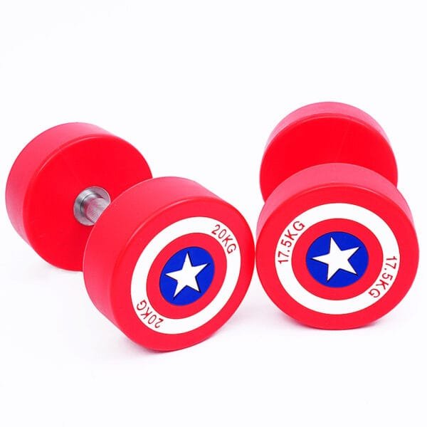 Captain America Inspired Dumbbells, 2.5-50kg Weight Increments, Anodized Aluminum, Compact Design
