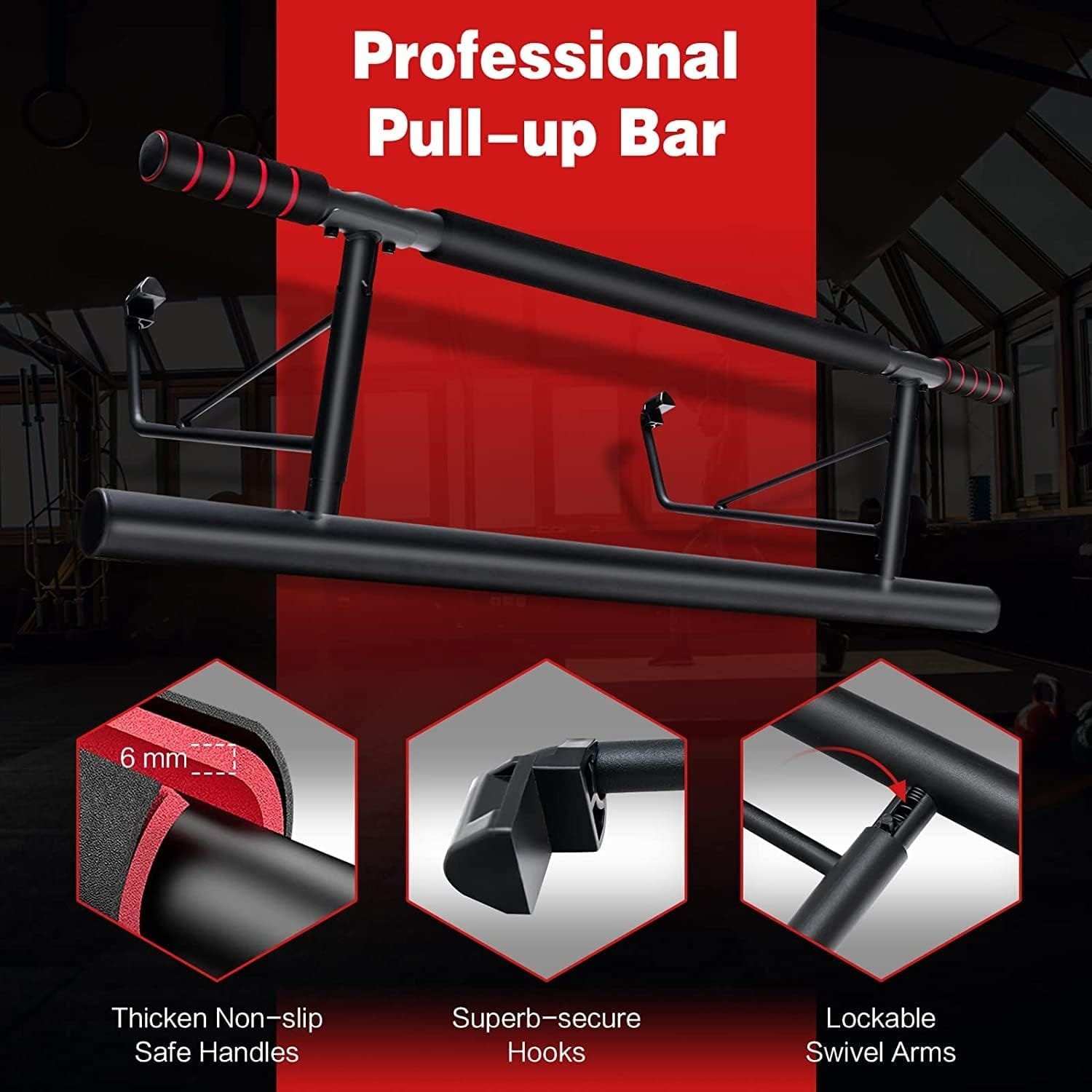 The pull-up bar is easily foldable, making it a convenient storage solution. Set it up in seconds after your workout and tuck it away effortlessly when not in use.