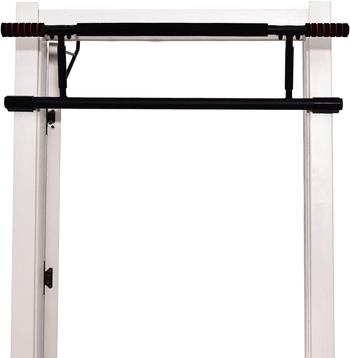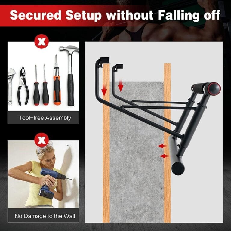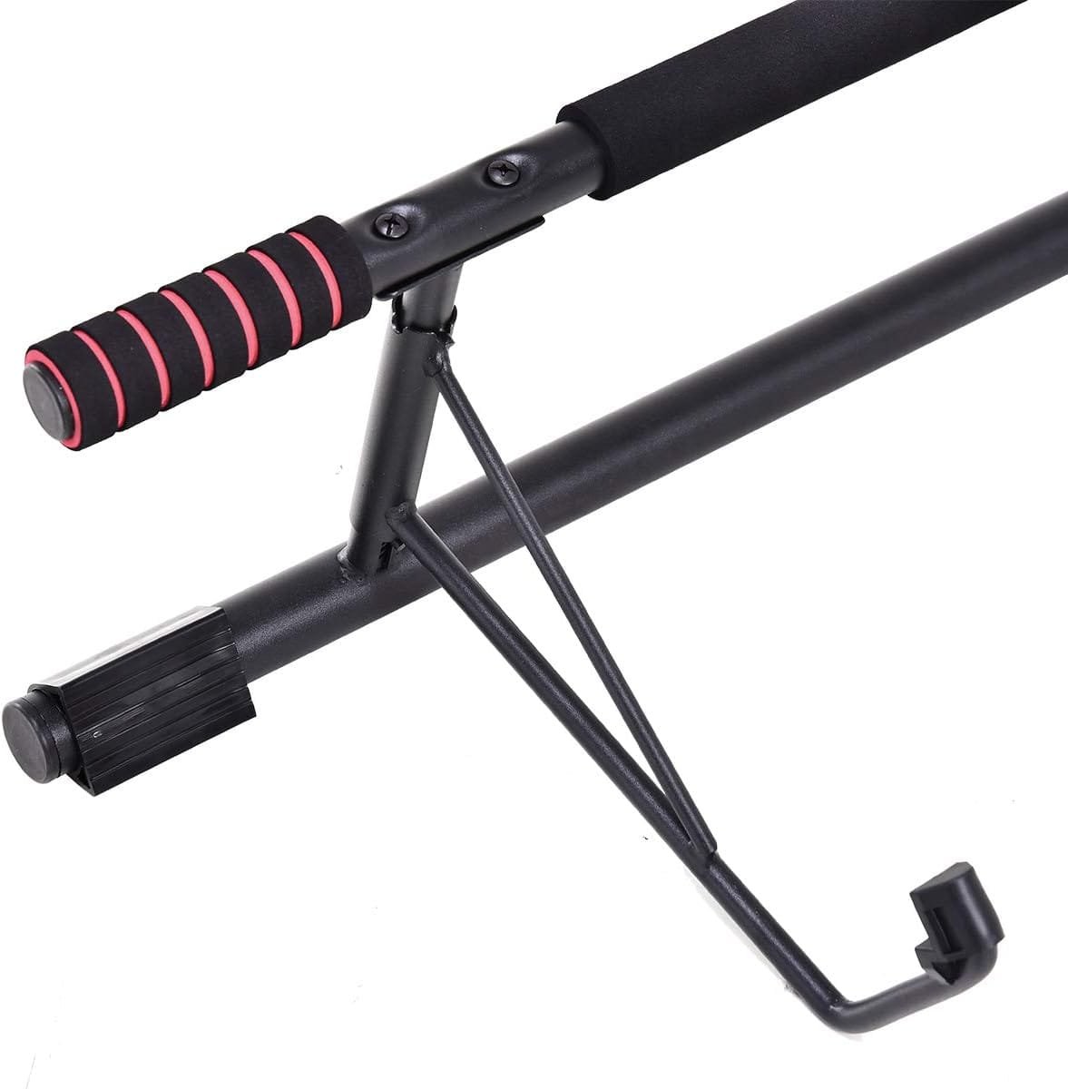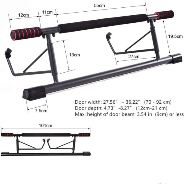 Designed to fit a wide range of doorways, this pull-up bar accommodates widths from 22.83″ to 36.22″ (58-92 cm) and a depth of 8.27″ (21 cm). It holds up to 400 lbs (200 kg) and can be used for push-ups and sit-ups as well.
