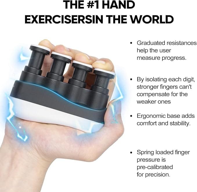 - Whether you’re a guitarist, pianist, drummer, or looking to improve your grip for sports like rock climbing or tennis, this finger strengthener will help you achieve better control, faster finger movement, and stronger grip power. Ideal for warming up before performances or practice sessions.