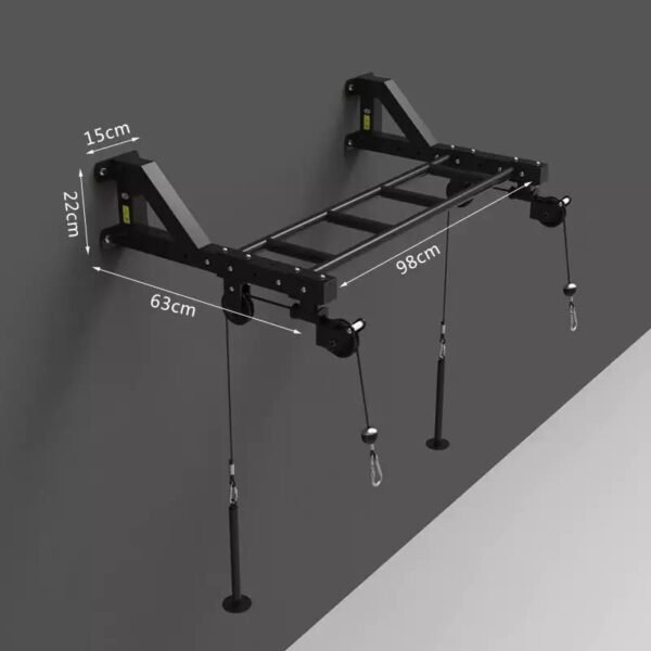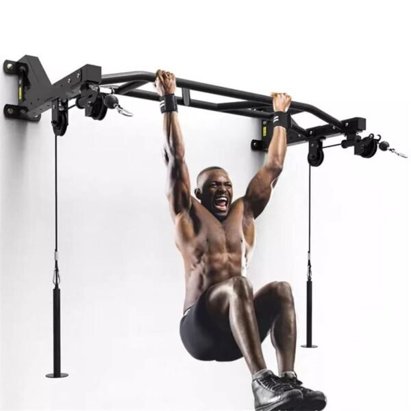 Transform your home gym with our multifunctional wall-mounted pull-up bar equipped with a pulley system, designed to enhance upper body strength and flexibility.