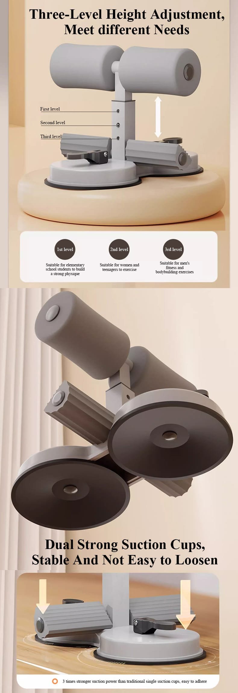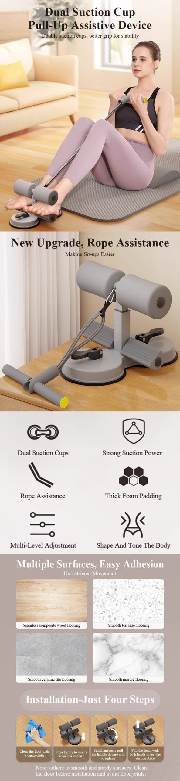 Portable Adjustable Sit Up Floor Holder with 2 Strong Suction Cups and 1 Resistance Band