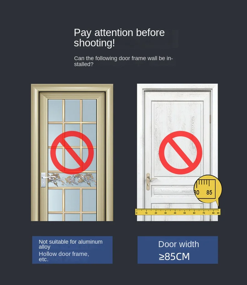 A: It fits standard door widths up to 85cm and must be mounted on a sturdy wall for optimal safety.