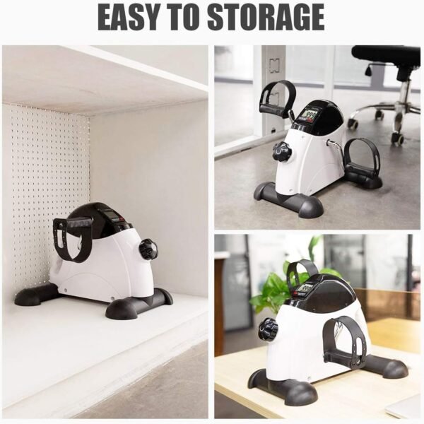Featuring a portable handle, this mini exercise pedal bike is always ready to go. Its compact dimensions of 13.7″ x 15.7″ x 11.6″ make it ideal for use under desks, although please note that the desk height should not exceed 47 inches for optimal use.