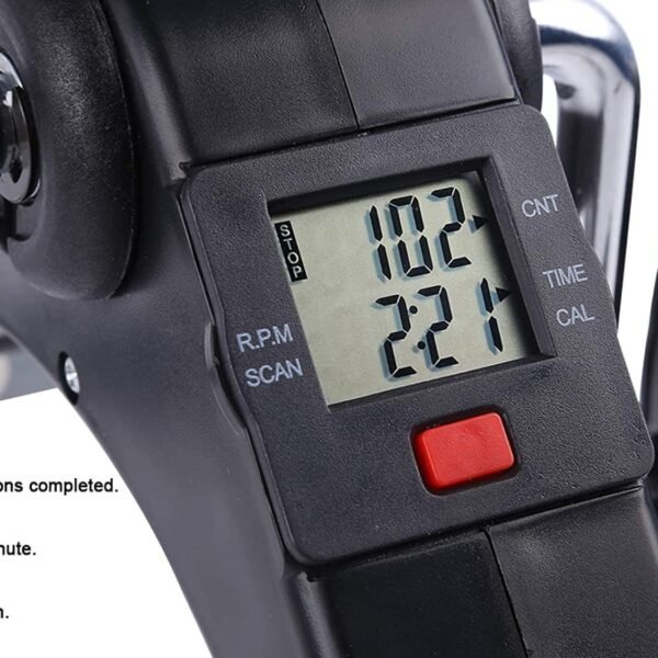 Equipped with a digital panel, the exercise bike displays key metrics including time, revolution count, revolutions per minute (RPM), and calories burned. The easy-to-read screen automatically alternates through these functions via a sophisticated scan feature, keeping you informed about your progress without interrupting your workout flow.