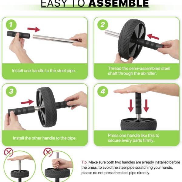 Our ab wheel roller is designed for convenience. It is portable and easy to assemble, making it an ideal companion for workouts at home, in the office, at the gym, or even outdoors. The compact design allows you to take it anywhere and exercise whenever you have the time.