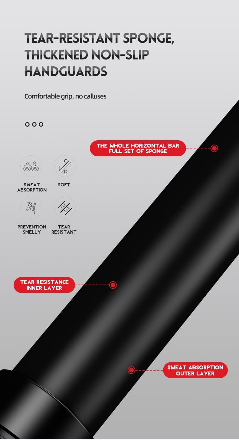 Our horizontal bar is ideal for a wide array of exercises, including pull-ups, stretching ligaments, push-ups, sit-ups, and more. The tear-resistant, sweat-absorbing, thickened non-slip hand grips ensure a comfortable and secure grip for any type of exercise.