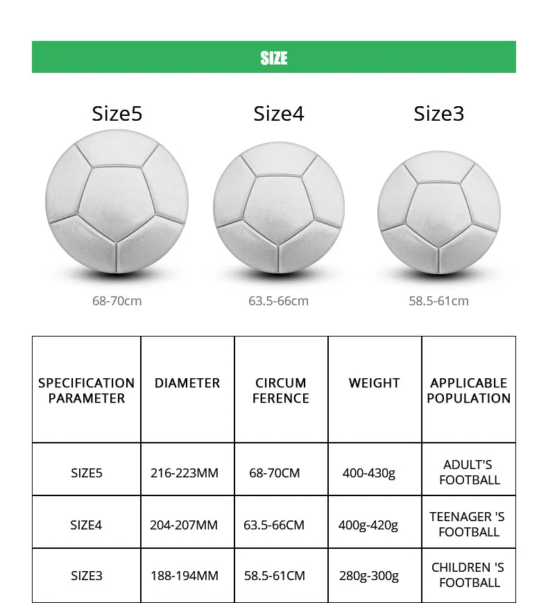 Choose from sizes 3, 4, and 5 to meet different age groups and needs. Size 3 measures 7.1 inches, suitable for younger kids; Size 4 is 7.5 inches, perfect for 4-15 years old youth; while Size 5 is the official size of 8.7 inches, ideal for both youth and adults aged 4 and above.