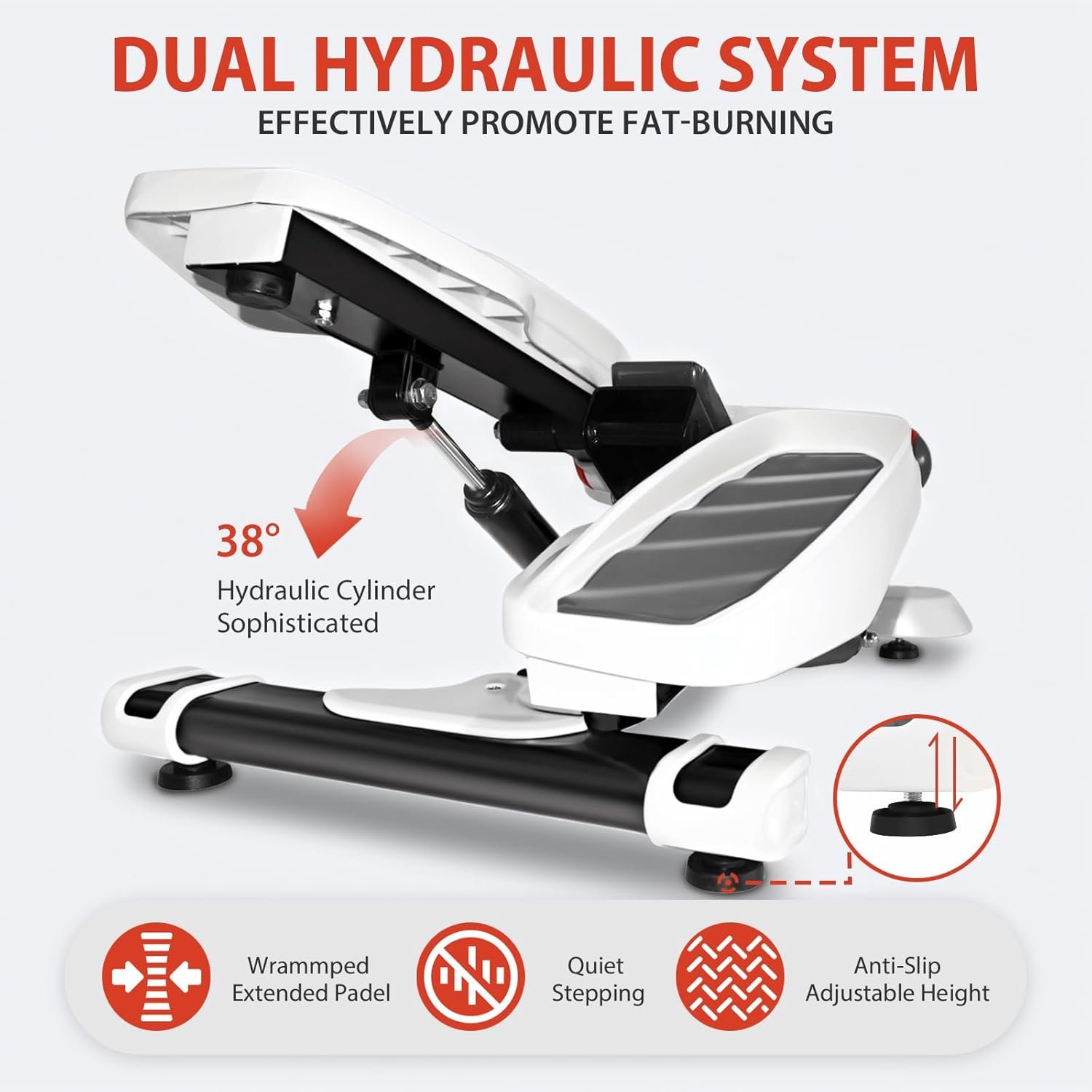 Equipped with a dual-hydraulic drive system, this stepper provides stable resistance, making your workout smoother and more effective. The shock-absorbing rubber pads at the end of the pedals effectively reduce noise, creating a quieter and safer workout environment.