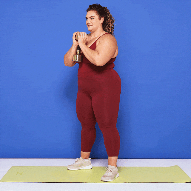 - Push through your heels to stand up, squeezing your glutes at the top. This completes one repetition.