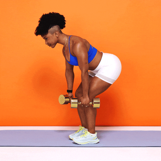 - Hinge at the hips, pushing them backward while keeping your back flat.